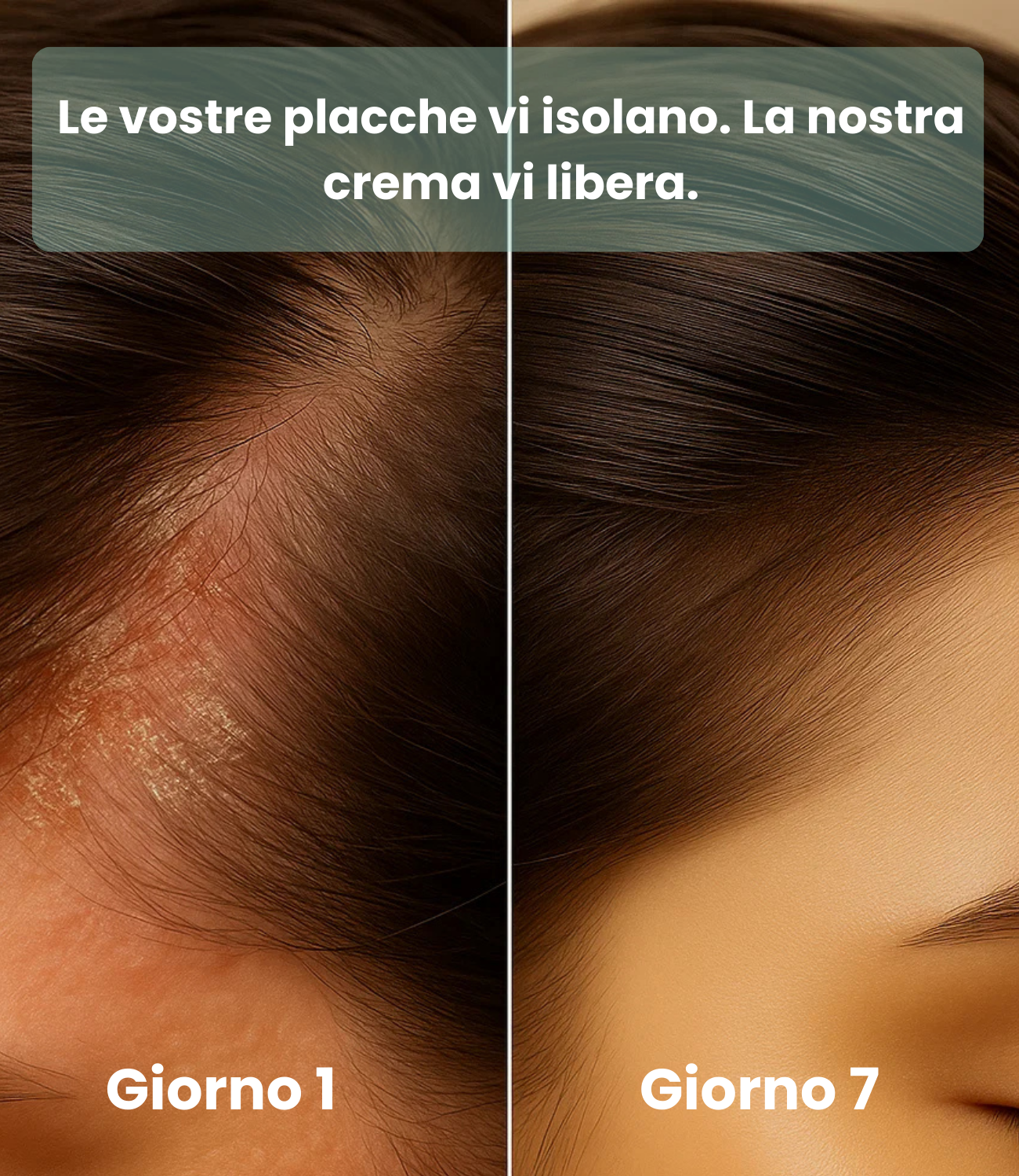 “Ho speso centinaia di euro in trattamenti contro la psoriasi. Dermatologi, creme, shampoo medicati. Niente funzionava... fino ad ora. Già dalla seconda applicazione: meno arrossamenti, cuoio capelluto lenito. Finalmente una crema che capisce la psoriasi.”